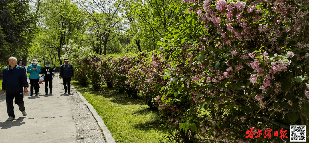 这还是一条移步换景的赏花通道,从道外的江畔路到道里的斯大林公园、九站公园,群力音乐公园直到外滩湿地,沿途有丁香等各种花相伴,还能欣赏江景和湿地景观,非常适合徒步赏花。