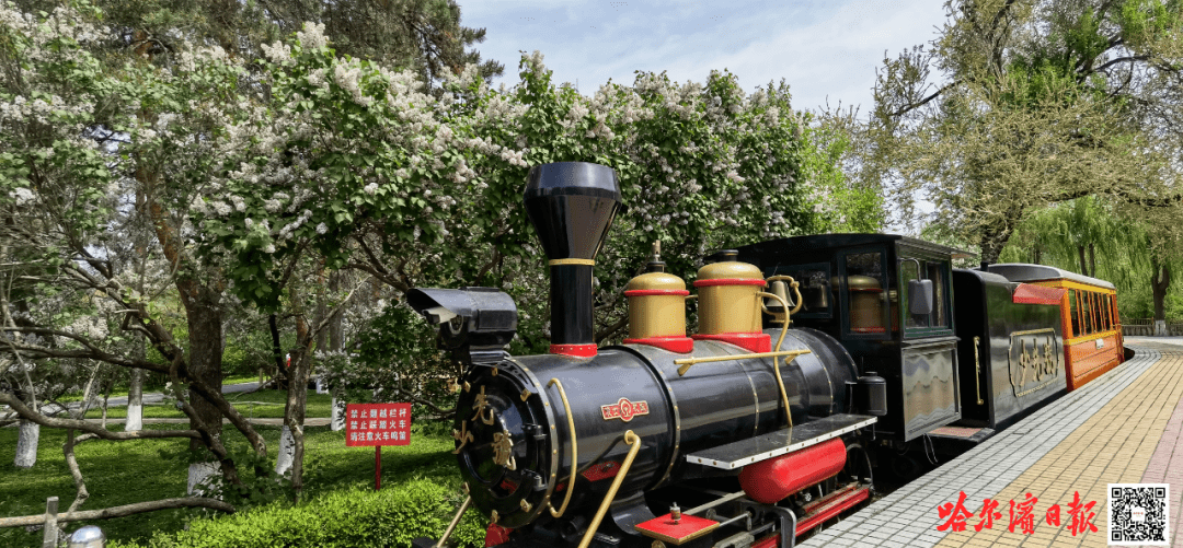 儿童公园里的“明星花”也有不少,如榆叶梅、百年丁香树、黄刺玫等,每年开花时都会吸引众多游客打卡拍照。园里的几棵百年老丁香树,依然是枝繁叶茂,花团锦簇。要说最有特点的地方,是沿着园内小火车行驶途中,沿线开满了丁香花和黄刺玫,这种小黄花清新而明丽,坐上小火车一路走来,你可以慢慢的欣赏着道路两旁这些美丽的小花,人在车中坐,花儿随风摇曳,享受浪漫时光。