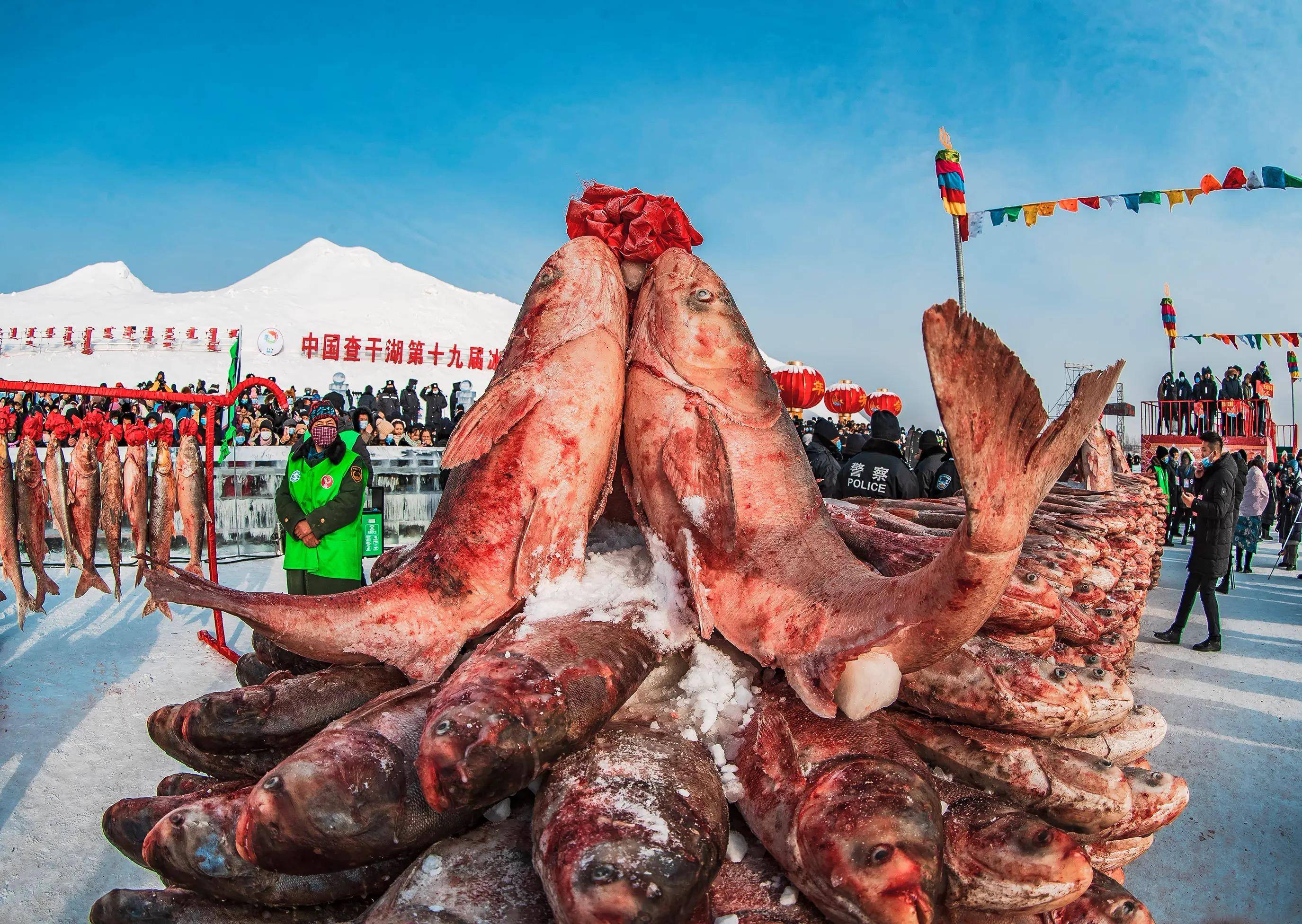 几乎每年的查干湖冬捕,捕鱼量都在300万斤以上,这些鱼并不是当场吃掉了,因为大多数人都是来这里看热闹的。
