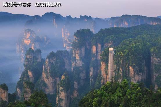 得益于百龙天梯的修建,使这些原不被知的奇观呈现在世人面前。百龙天梯,是去往袁家界景区的必经之地,电梯修建于悬崖峭壁之上,垂直落差326米,运行速度极快,1分58秒即可登顶。被称为“世界上最高、运行速度最快、载重量最大的电梯”,并因此入选吉尼斯世界纪录。