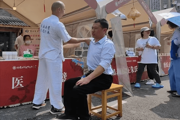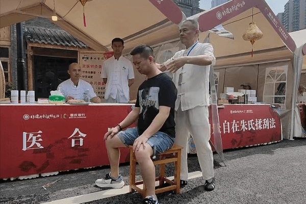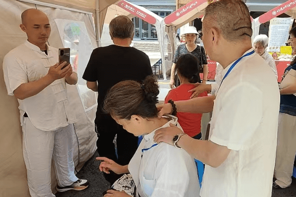 活动现场,极具特色的中医非遗项目——“武医合璧”,由非遗传承人、重庆武医合璧研究院院长张友明老师亲自“操刀”,这种结合中国武术与传统医学精华的疗法,吸引了众多市民前来体验,不少体验者啧啧称奇。