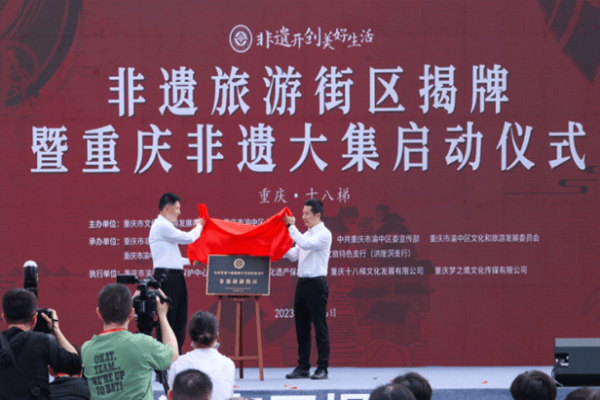 5月16日上午,在2023年“文化和自然遗产日”来临之际,由重庆市文化和旅游发展委员会、重庆市渝中区人民政府主办的“非遗旅游街区揭牌暨重庆非遗大集启动仪式”在渝中区十八梯传统风貌区隆重举行。