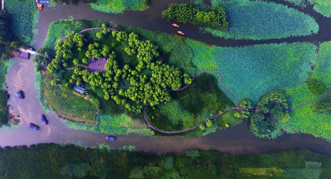 夏日刚至,湿地公园里的绿意越来越浓,草木葱茏、绿树成荫,勾勒出一幅旖旎的生态画卷。