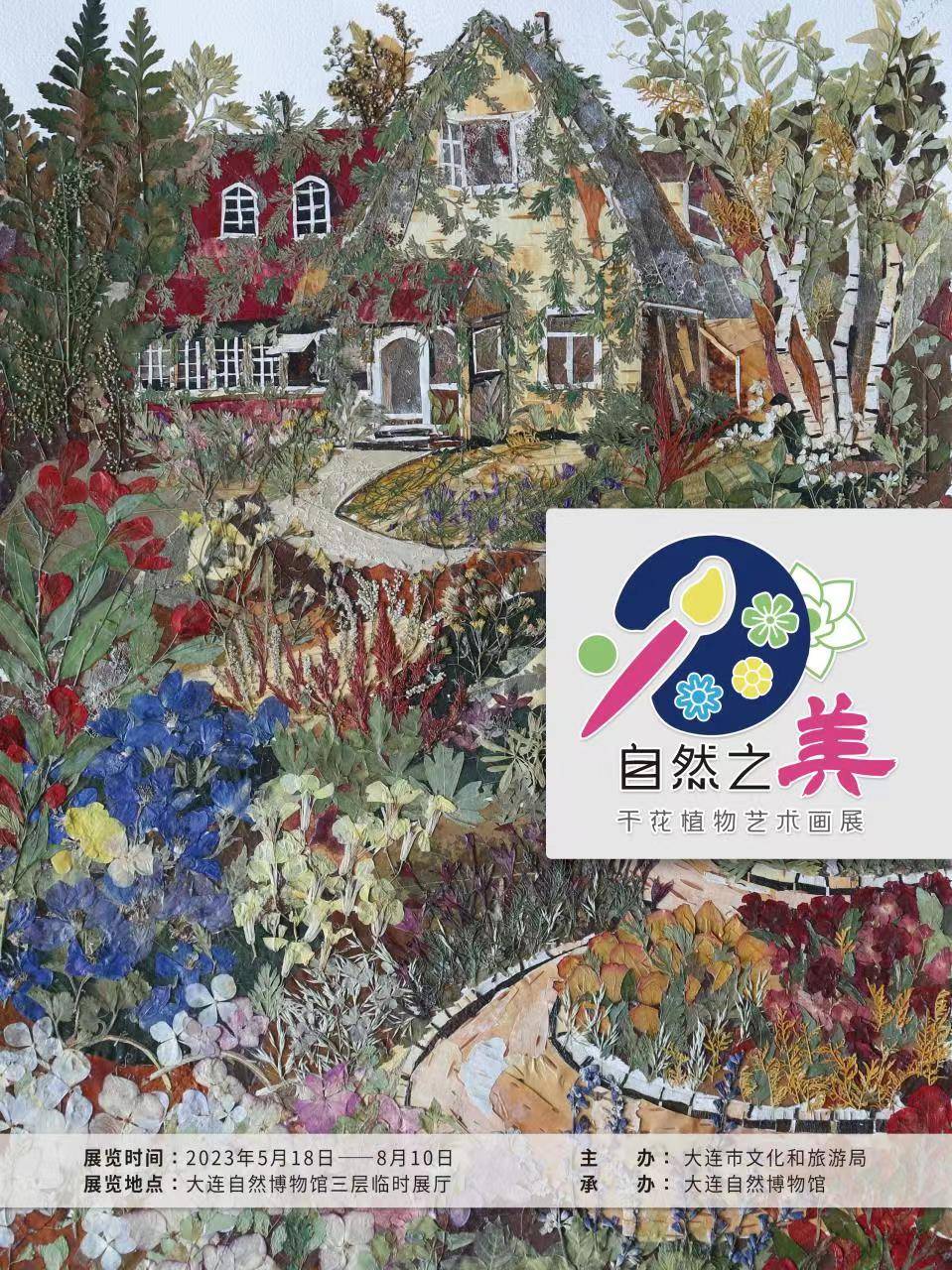 《自然之美——干花植物艺术画展》为518博物馆日特别展览。干花植物艺术画源于16世纪意大利的植物标本制作工艺,是将干燥的花朵与枝叶,甚至树皮为等原生态植物原料,通过修剪、拼贴等特殊的方式进行创作,在与大自然亲密接触的过程中,将植物的惊艳瞬间定格至隽永画面的艺术。展览共展出60幅不同风格与主题的干花植物艺术画作品,同时系统的解读每幅作品采用的不同的植物种类及植物的生态学特征,采用科学与艺术相融合的理念,带领观众进入一个不同的植物世界。