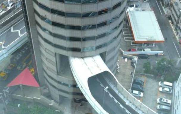 这一座建筑大概有16层那么高,总高度为七十二米左右,它叫做门塔大厦,位于日本的福岛区。乍一看这座建筑物并没什么出奇的,但是它最特别的一个地方,就是会有一条高速公路穿楼而过。说到这里,你是不是觉得有一点熟悉,它和重庆的那条轻轨是类似的,两者都是一条路径直穿过一座建筑物。