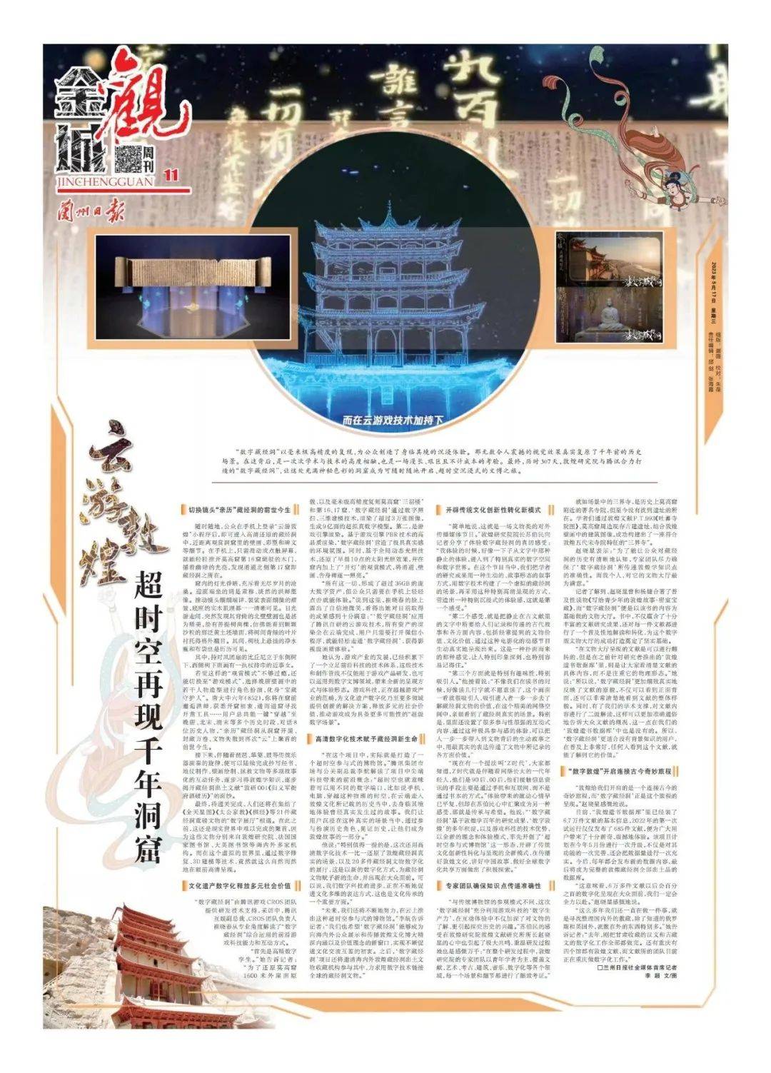 “现在有一个提法叫‘Z时代’,大家都知道,Z时代就是伴随着网络长大的一代年轻人,他们是90后、00后,他们接触信息资讯的手段主要是通过手机和互联网,而不是通过书本的方式。”体验带来的激动心情早已平复,但却在苏伯民心中汇聚成为另一种感受,那就是传承与希望。他说:“‘数字藏经洞’基于敦煌学百年的研究成果,‘数字敦煌’的多年积淀,以及游戏科技的技术优势,以全新的理念和体验模式,率先开创了‘超时空参与式博物馆’这一形态,开辟了传统文化创新性转化与呈现的全新模式,在传播好敦煌文化、讲好中国故事、做好全球数字化共享方面做出了积极探索。”