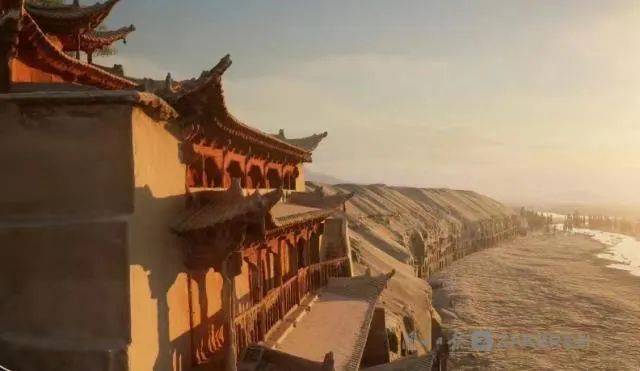 就如场景中的三界寺,是历史上莫高窟附近的著名寺院,但至今没有找到遗址的所在。学者们通过敦煌文献P.T.993《吐蕃寺院图》、莫高窟周边现存古建遗址,结合敦煌壁画中的建筑图像,成功构建出了一座符合敦煌五代宋寺院特征的“三界寺”。