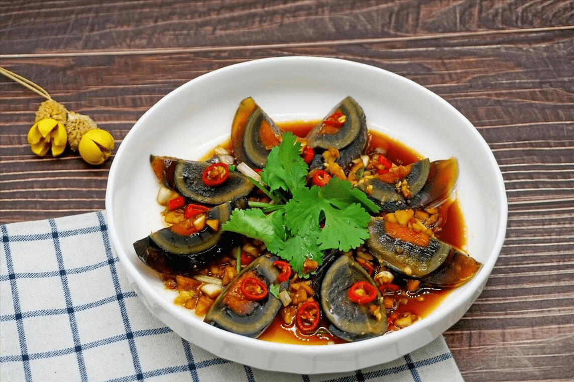 皮蛋在以前是它可是稀罕货,尤其是炎热的夏天,只要说谁上火,总是要来上一点皮蛋,说是吃完可以降火。此外,客人来了要下酒菜,凉拌皮蛋也是经典的当家菜,老辈人特别喜欢。
