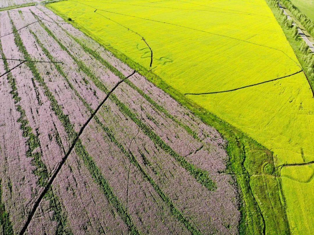 但伊犁的夏天,不只有薰衣草的紫,还有油菜花的黄。