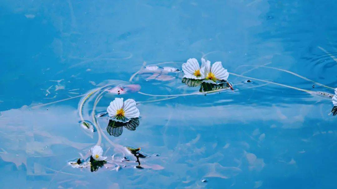 尤其是6月的泸沽湖,澈蓝的湖水中,还会静静摇曳着朵朵小花,宛如一片坠落人间的星辰。