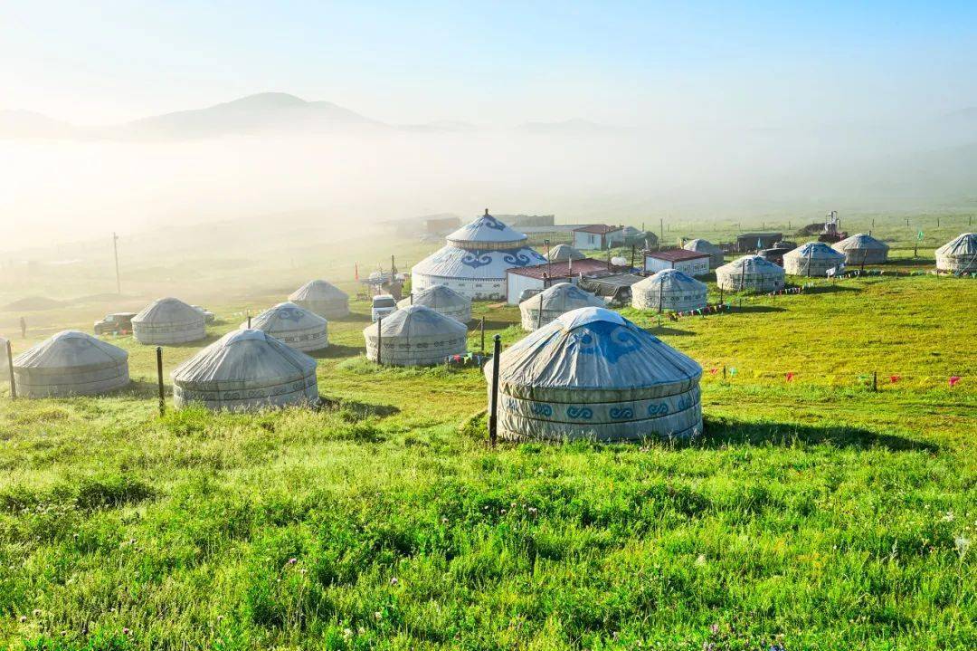 走进了才发现,原来是一个个可爱的蒙古包,和那些悠闲吃草的牛羊。