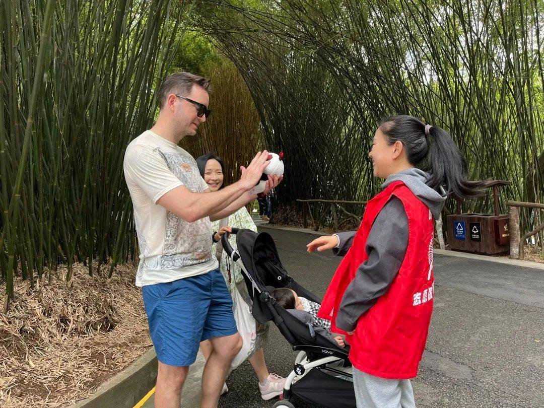 “为垃圾不落地的行为点赞,这只蓉宝送给你。”在熊猫基地张泽林因为自己的文明行为获得了志愿者的点赞,并收到了文明礼物——蓉宝。在谈到即将举行的成都大运会,张泽林表示,面对远道而来的世界各地的运动员,作为成都的主人,我们应该做到文明观赏、文明观赛、文明旅游,争做文明市民,向全世界展示成都人的热情好客、文明有礼。