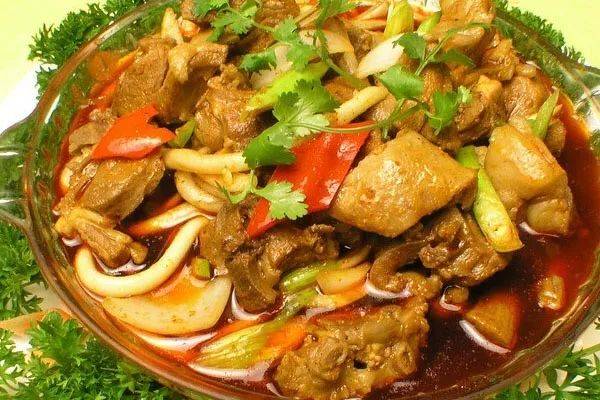 从字面上看,黄焖羊羔肉是焖出来的,还闷的是羊羔肉。这个菜的做法比起手抓羊肉来,要精细多了。有各种调料不说,还在肉中加上甘肃定西土豆粉、本地洋葱等食材,羊肉的颜色因为佐料的作用,也显得深一些,最特别的是裹足了羊肉汤的土豆粉会比羊肉还受欢迎。