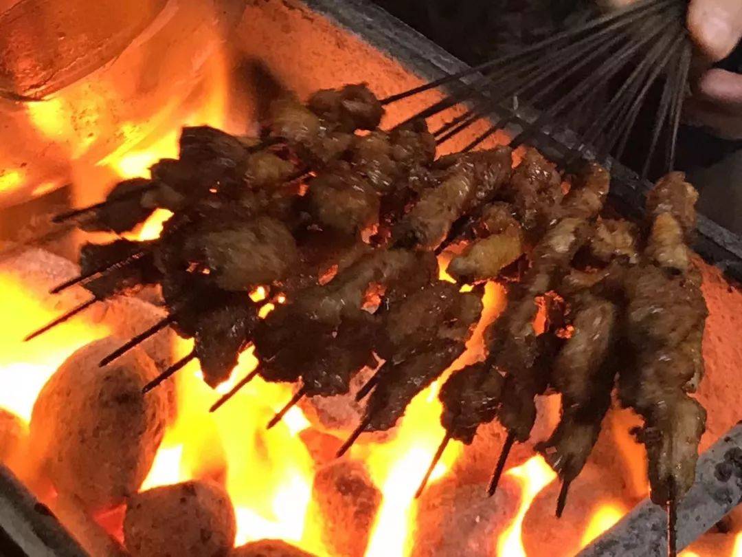 羊肉串与以上几种吃法相比较,显得不够气派了。甘肃本地的烤羊肉串相比起新疆的大羊肉串来可小气多了,把切小的羊肉串在细铁丝上用火烤,加上盐、花椒、孜然等各种调料,烤的外焦里嫩,吃的满嘴流油。有的烤肉店还提供烤草原风干羊肉,女孩子半饱的时候,要上几串,既解馋又减肥。
