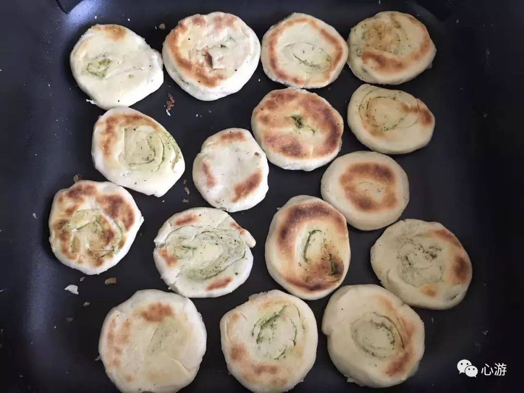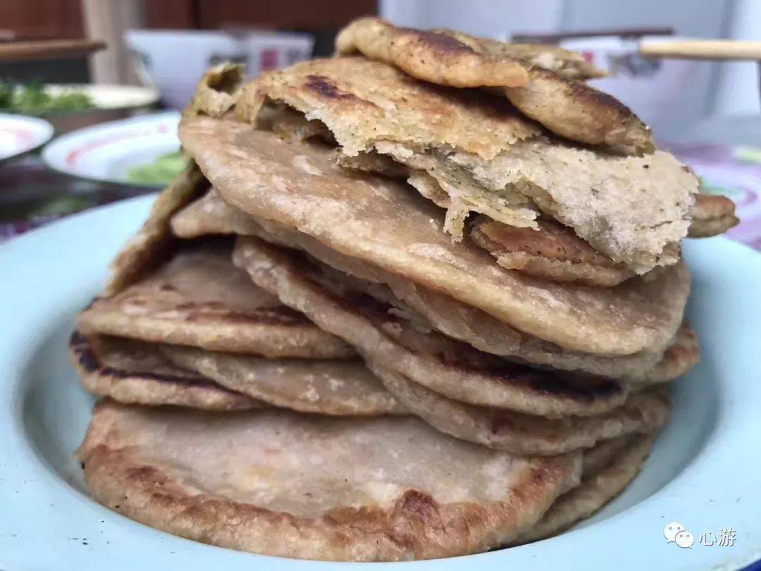 这种烙饼是甘肃农村家家户户都常备的干粮,和面的时候放入香豆面子和盐,铁锅里不放油直接烙,烙到二面焦黄拿出来,热吃冷吃都能吃出面香味。张艺谋拍的电影《长城》里,有几个镜头吃的就是这种饼。