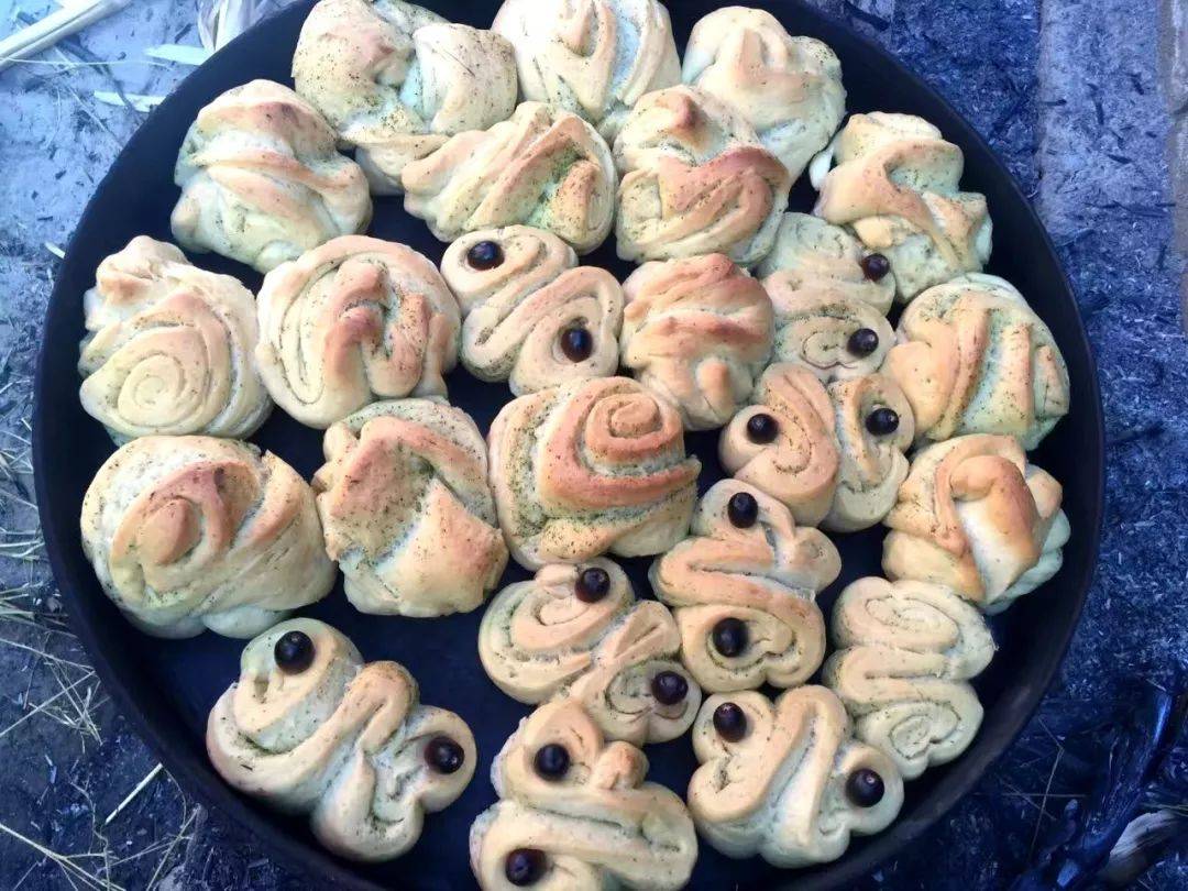 甘肃的烧壳子,用发好的碱面,加上西北特有香豆面、胡麻油,卷起来切段再反卷成一朵花的形状,放入特制的圆形烧锅子,用玉米杆或者麦草把锅烧热烤制而成,吃起来酥软香脆,耐储存、便于携带。是甘肃人秋冬的主要食物,特别是秋天农忙,没时间煮饭,烧一缸可以吃一个多月,这种烤制馍馍的方法,从明朝到现在六百多年没有变过。
