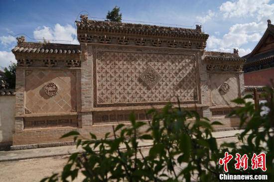 青海省海南藏族自治州贵德县黄河岸畔文庙及玉皇阁古建筑群内的关帝庙青砖照壁。马铭言 摄
