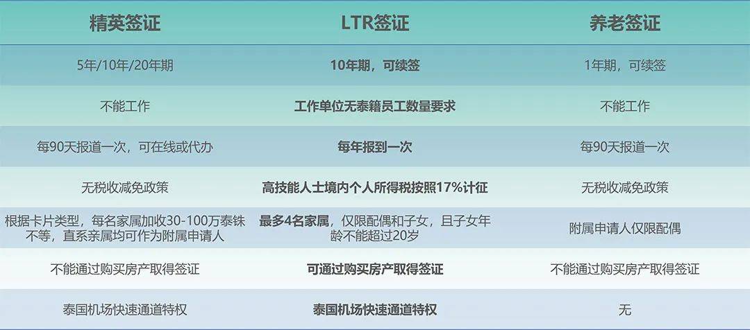 4、精英签证、LTR签证、养老签证对比
