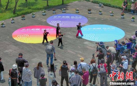小朋友们在东湖景区表演街舞吸引游客。王刚 摄