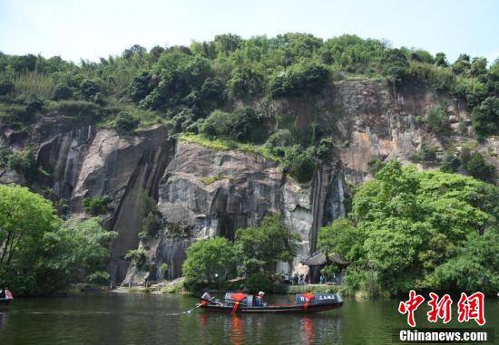 晚清著名书法家、教育家、园林艺术家陶濬宣又以《桃花源记》为范本,精心布局园内的亭、台、楼、阁,与崖壁、岩洞、石桥、湖面巧妙结合,于19世纪末建成了美妙绝伦的东湖。图为游客徜徉东湖石矿峭壁下。王刚 摄