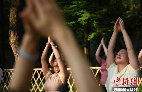 市民在东湖景区优美的生态环境中瑜伽健身。王刚 摄