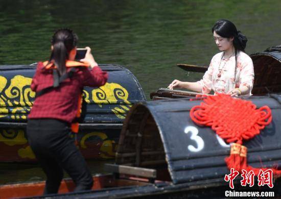东湖乌篷船上的古琴演绎吸引过往游客。王刚 摄