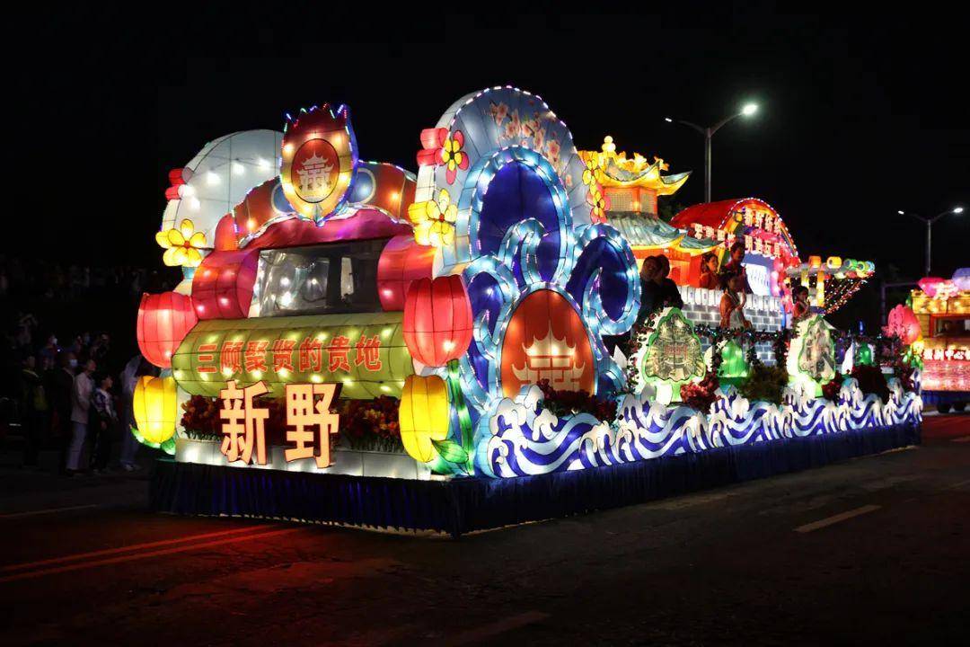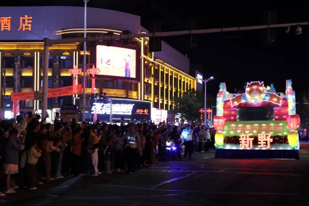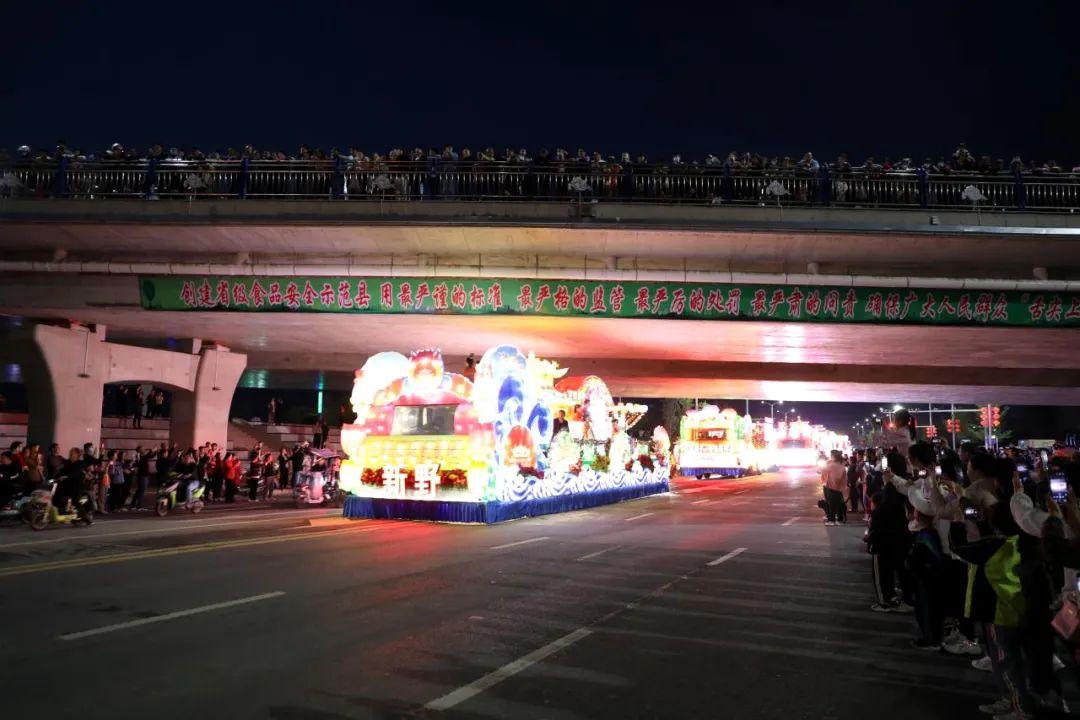 华灯初上夜未央,霓虹璀璨人如织。2023年5月8日19时至22时,首届世界月季博览会花车巡游走进河南省南阳市新野县。代表南阳各县(市、区)的18辆花车造型各异、色彩亮丽,突出展示了南阳各地人文风情、地标特产、特色产业,犹如一幅精彩纷呈的壮美画卷缓缓展开。