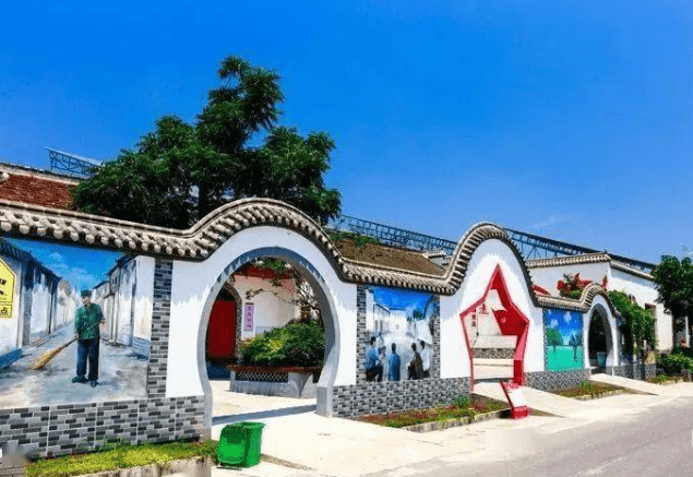 特色的马头墙体上画满了各式乡土风情的彩绘。