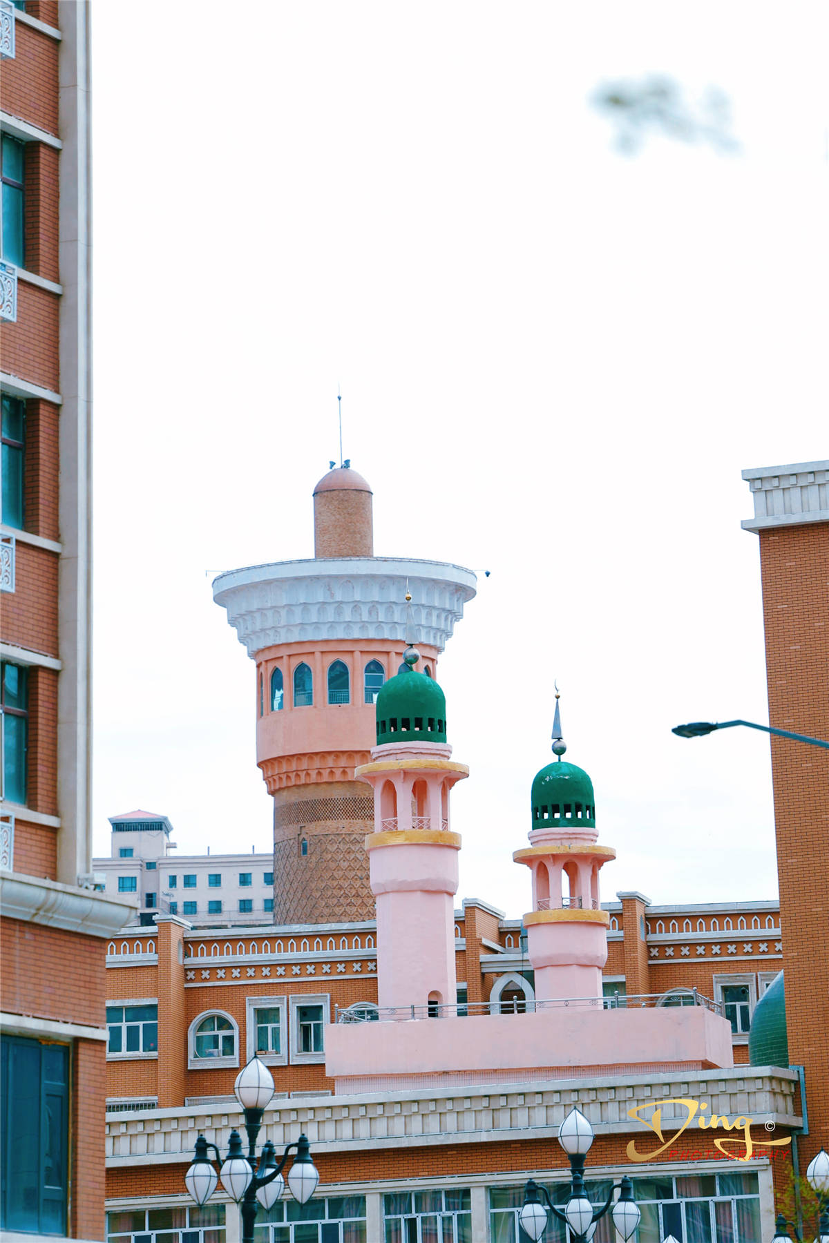 大巴扎建筑是以传统的磨砖对缝与现代的饰面工艺相结合的处理手法,就像一座大型的红色城堡。