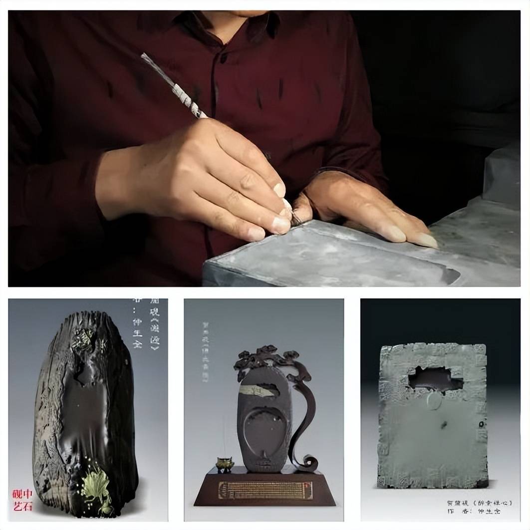 |贺兰砚,宁夏的五宝之一,2011年,贺兰砚制作技艺入选第三批国家级非物质文化遗产名录。仲生全,国家级非遗项目贺兰砚雕刻技艺自治区级代表性传承人,于2016年创立中石艺品工作室,潜心研究创作贺兰砚和篆刻技艺。2015年,作品《三足云纹砚》和《缘》被录入航天主题艺术芯片并搭载航天器进入太空;2018年8月,作品《清明上河图》和《失落的文明》被宁夏博物馆收藏;2021年6月,作品被中国昆明官渡非遗馆收藏;2022年9月,作品《路漫漫》入选国家非遗博物馆馆藏作品名单;2022年10月,作品《路漫漫》数字版被中国民间文艺家协会会员数字博物馆藏。