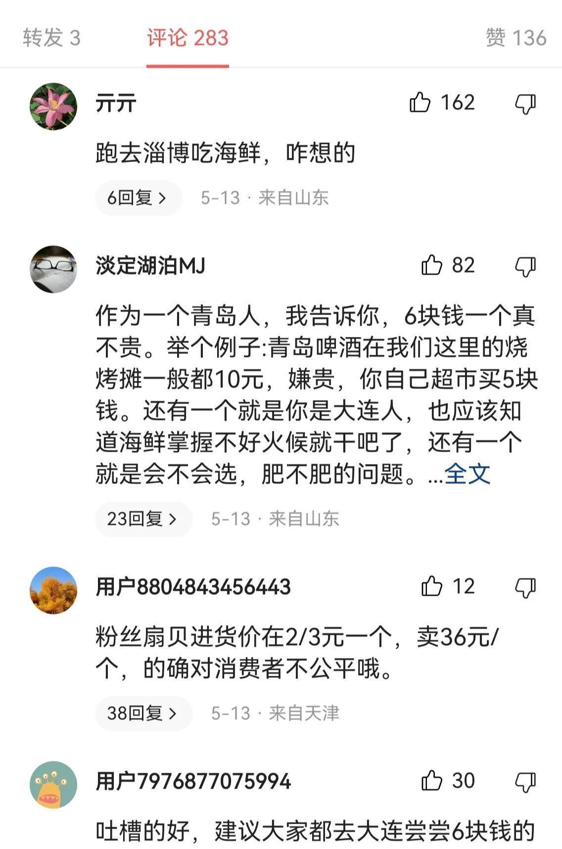 更有网友指出,淄博烧烤没有海鲜,烤海鲜的都是东北人,意思是大连游客其实是被东北人坑了。当然这个说法是不合适的,先不说到底是不是东北人开的烧烤店,这个扇贝价格也不能算是坑人吧。