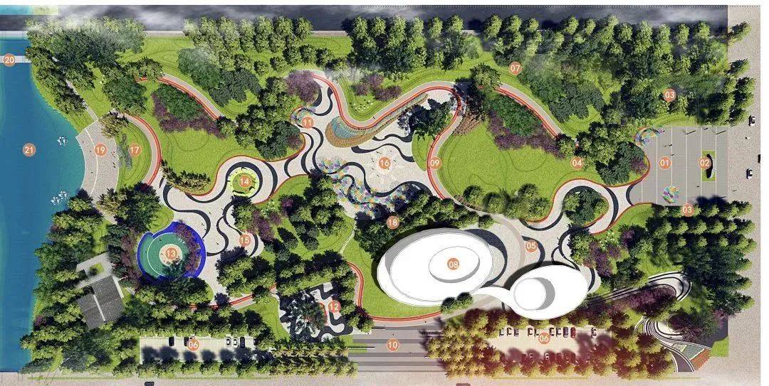 幸福河公园西邻幸福河,东接志学路,占地面积约60亩。为了满足不同年龄段的居民需求,公园专门设置了公共互动区、儿童活动区、绿化植被区等各个功能分区,各分区以公园步道作为主要环线进行串联,确保公园建成后达到错落有致、风景秀美、三季有花、四季有景。