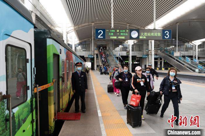 中新网大连5月17日电 (杨毅 韩庆潇)17日13时59分,Y591次旅游列车满载着240名游客由大连站缓缓开出,一路驶向阿尔山站。这是中国铁路沈阳局集团有限公司(以下简称"沈阳局集团公司")开行的首趟“兴安盟号”杜鹃专列。