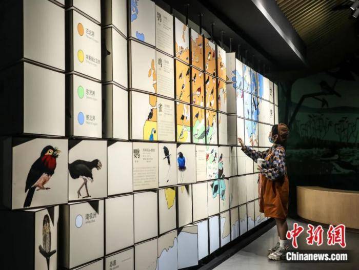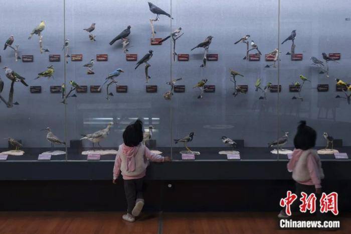 2022年5月18日是国际博物馆日,小朋友走进昆明动物博物馆参观鸟类标本。康平 摄