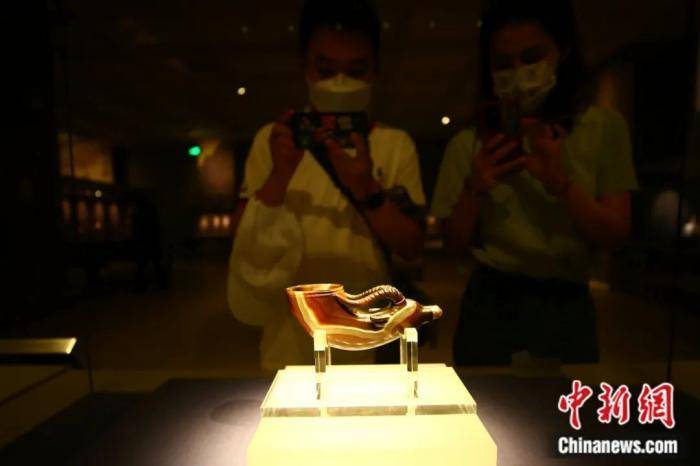 藏于陕西历史博物馆的镶金兽首玛瑙杯。张远 摄
