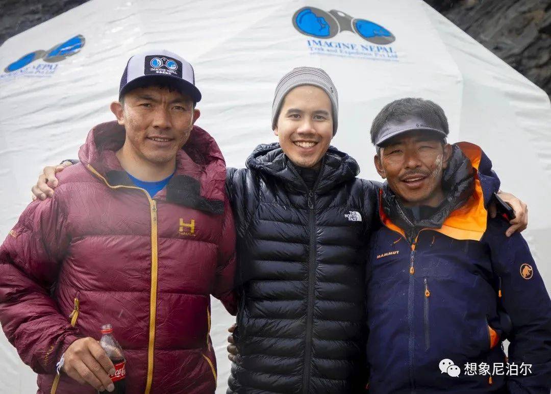 早上8:30,顾旭明先生和夏尔巴Lakpa Sona,新加坡登山者Matthew Lim Jun Jeh先生和Dawa Gyalje(达瓦G)也完成登顶!
