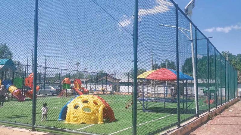 顺着主路一路向北,除了两边的住宅,西边还建有篮球场、广场、滑梯和健身区,灯光、音响齐全,定期维护,方便居民休闲娱乐;而东边则是公共停车场及一排商业建筑,所有门户朝村外开门做生意,丝毫不会影响村内居民生活。