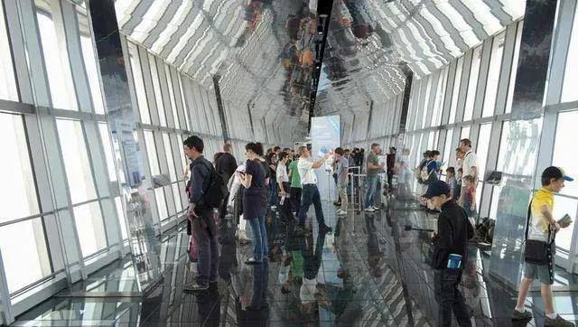 上海环球金融中心观景台位于上海环球金融中心100F,高472米,高空的观光天阁是一条长约55米的悬空观光长廊,为目前世界上最高的观光设施,内设三条透明玻璃地板,走在上面还能体验一回”会当凌绝顶,一览众山小“的豪情快意。