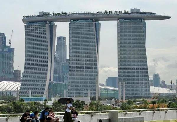 新加坡空中花园如同一个巨型的冲浪板横跨在三座酒店的顶部。占地1.24万平方米,距离地面200多米高,可容纳3900人参观游览。最让人称神奇的是位于空中花园的空中游泳池,全长150米,距离地面200多米高,是全球最大的空中室外无边际游泳池。游泳池的边缘看似无任何遮挡,就像瀑布的边际一样,与远处高楼大厦的景致溶为一体,看似危险,却显浪漫。所谓“无边际”就是其水面高于游泳池池边,水从四周像瀑布一样流下。还有大型露天平台,露天平台足有三个足球场那么大。其中一端延伸出去的观景台,是世界上最大的公共悬挂地。