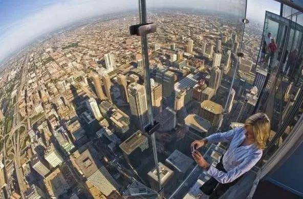 威利斯塔观景台建在美国芝加哥威利斯塔第103楼,地板是由玻璃制成,距离地面约412.5 米。在第103层有一个供观光者俯瞰全市用的观望台,天气晴朗时可以看到美国的4个州