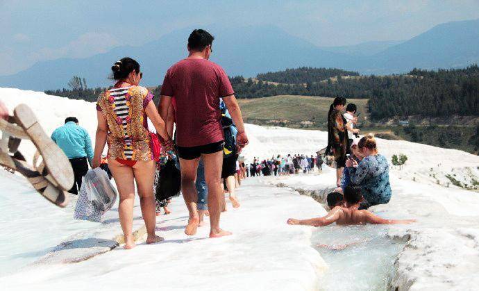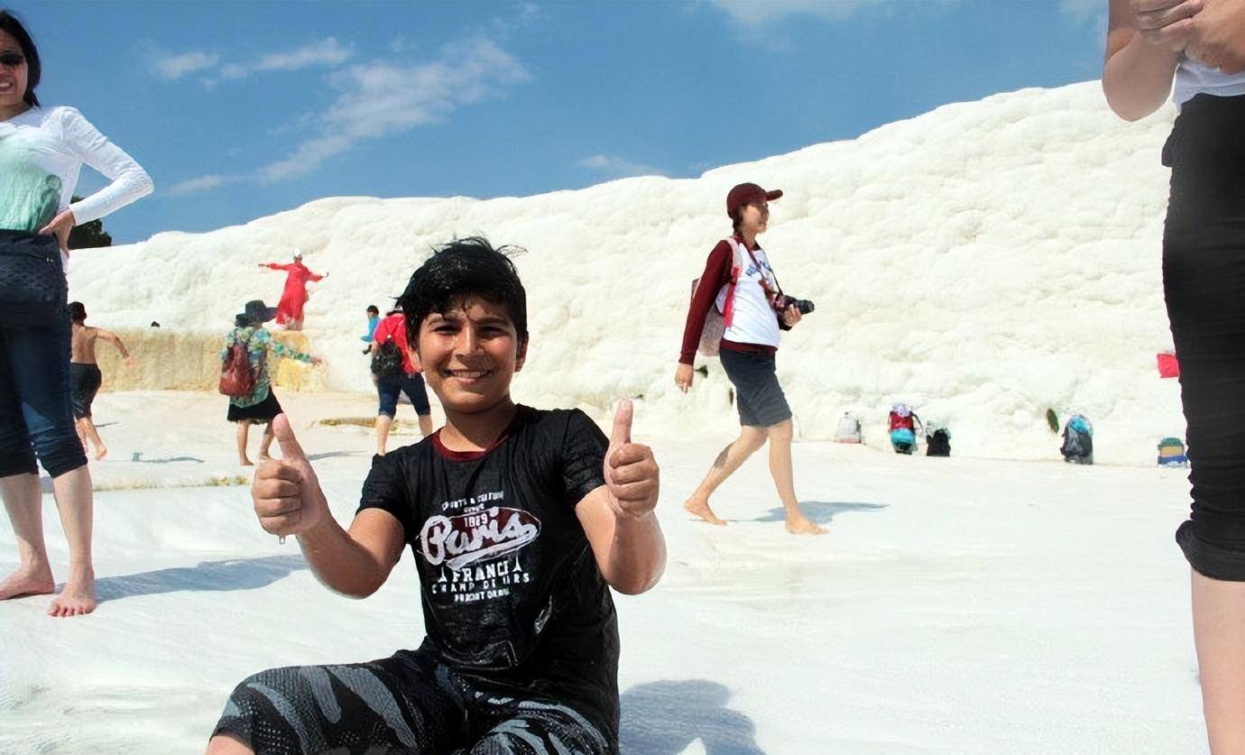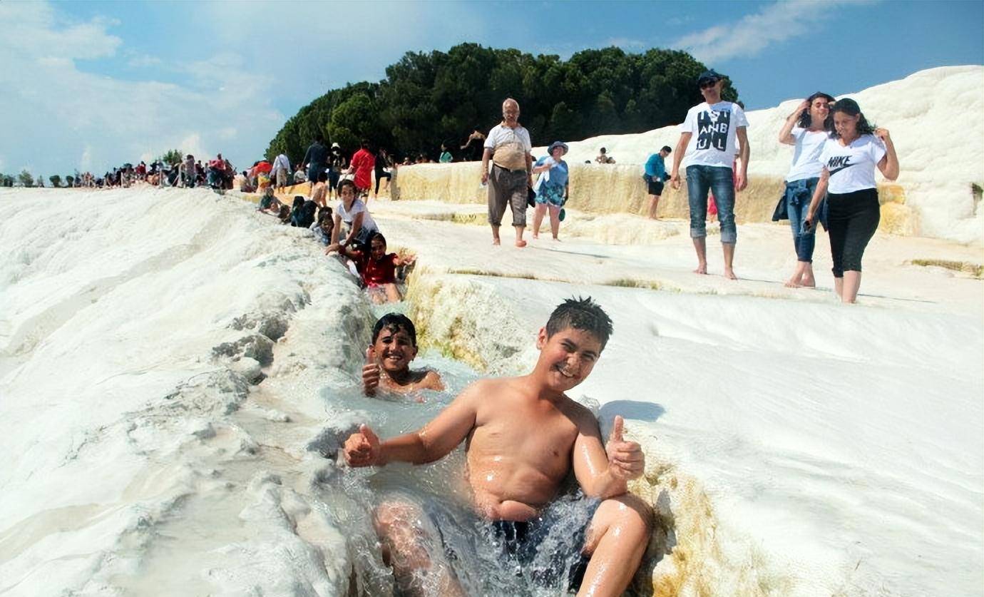 在棉花堡遇到一群男孩,调皮的用身体挡住水流,泉水哗哗的外溢。不过,没有人介意这一切