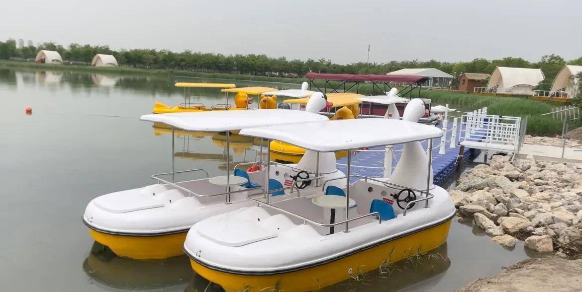 我建议,有想来东丽湖游玩骑行的朋友,可以把车停在万科城里来,然后进东丽湖游玩。因为在万科城这次的湖边,也修建了游船码头和租赁自行车网点。旁边还有一个超豪华的帐篷酒店,里面可以烧烤露营,绝对是超舒服的度假胜地。