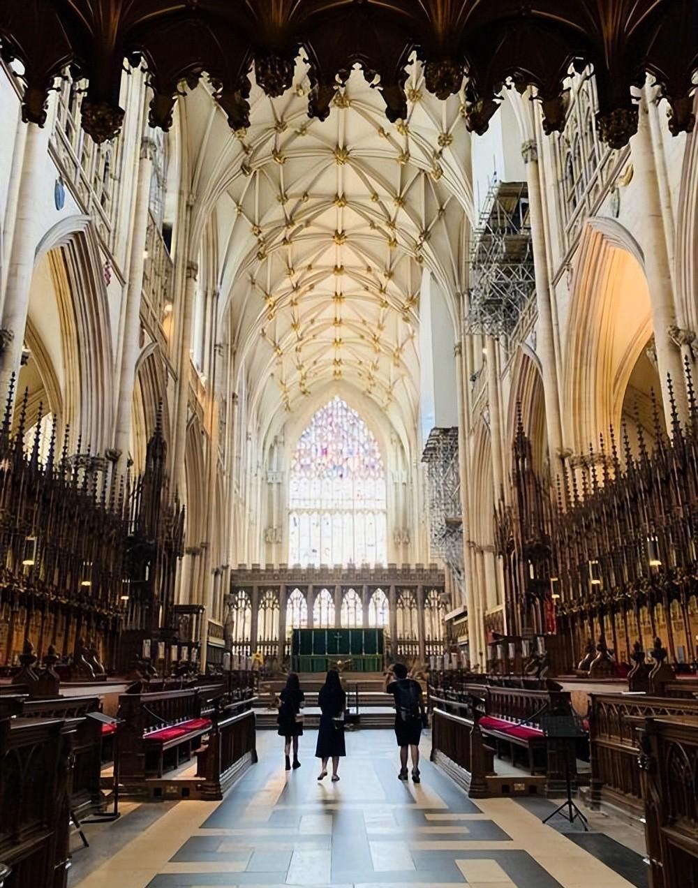 约克大教堂是约克城最著名的建筑之一,也是英国最大的哥特式教堂之一。它建于13世纪初期,取代了之前的教堂,成为英格兰北部最重要的宗教中心之一。教堂采用了传统的哥特式建筑风格,尤其是西立面的玫瑰花窗、装饰花纹和石雕非常精美,展示了中世纪建筑的壮丽和精细工艺。在教堂内部,人们可以欣赏到许多令人惊叹的艺术品和建筑细节,如高大的拱顶、维多利亚时期的玻璃窗、壮丽的管风琴等等。此外,约克大教堂还保存了许多重要的历史文物,如世界上最大的中世纪彩绘玻璃窗之一和英国最古老的一批书籍和手稿。