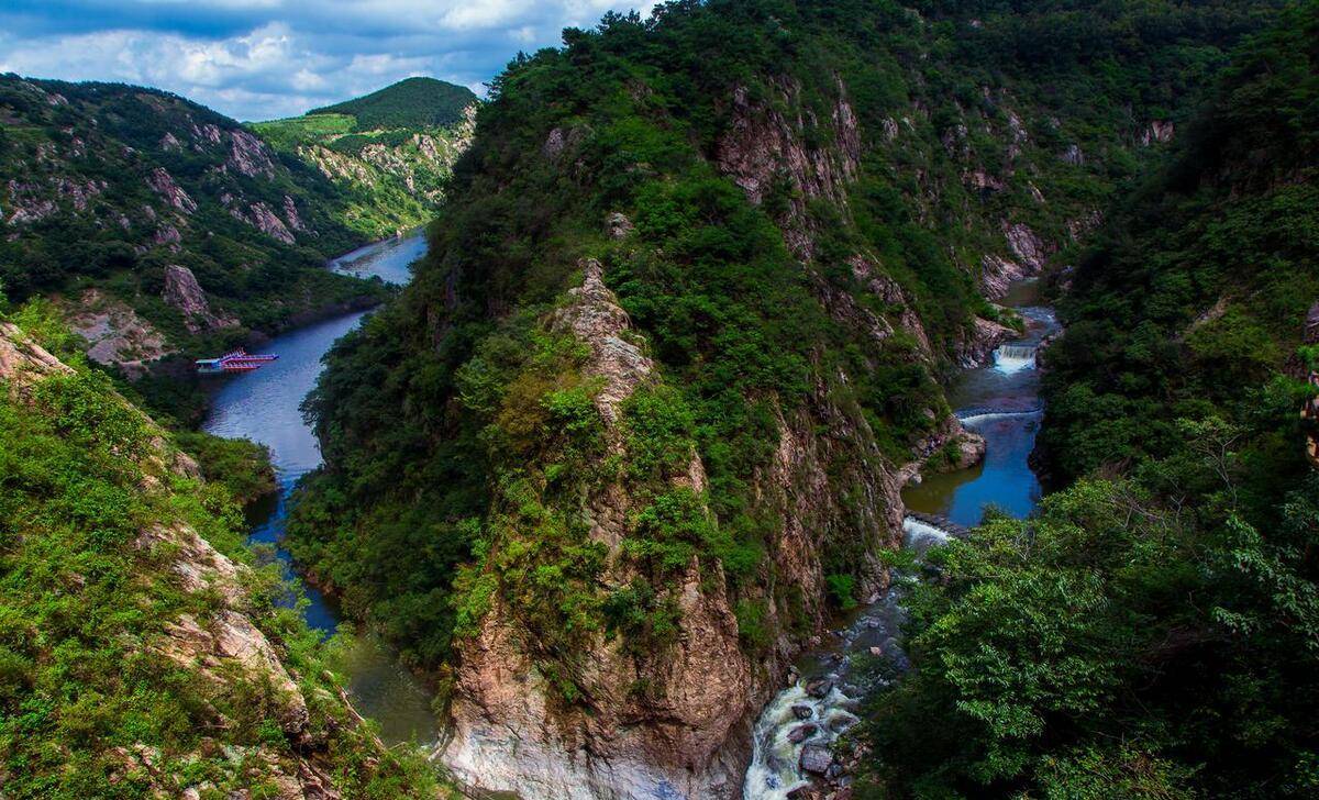 一、九仙山景区,景区内奇峰异石、洞窟泉瀑众多,以其突兀的山峰,苍翠的植被,古老的文化而闻名天下。杜鹃花盛开的季节,一簇簇、一片片绽放在春天里,映山红遍,自然山色。必打卡的景点就是龙潭峡谷风景区,村庄20余里,由灏水河、积霖谷、潮白源三段组成,有九寨沟的美称。是九仙山中水的经典代表,其次要打卡的就是兔耳峰,因峰顶如兔儿双坠而得名。远观峰顶,气势巍峨,站在这里不得不感叹大自然的鬼斧神工。还有一处景观也不能错过,那就是天半悬湖。灏水河的水一路冲撞,在此形成了落差30余米的瀑布,看上去蔚为壮观,有宛如天上凭空出现的酒壶流出琼浆一泻千里,因此叫天半悬壶。