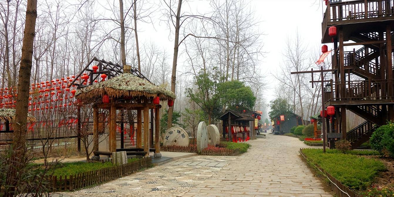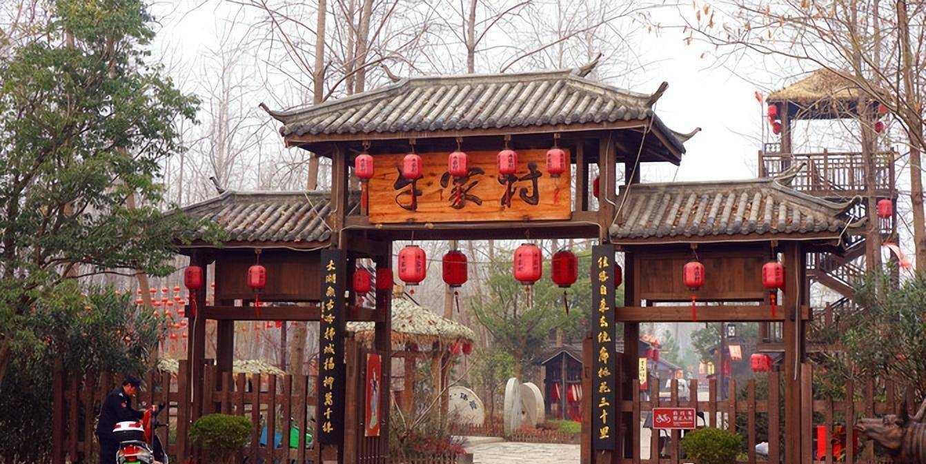 进入寨门,宽约3米的石径两侧,铁枪庙、曲三酒肆、郭家、杨家、试剑亭、渔樵耕读……20多处仿宋建筑,勾画出一个宋朝古村落。门口的保安把我截住,说自行车不能入内。那就在外面看看好了,接着往西骑行。