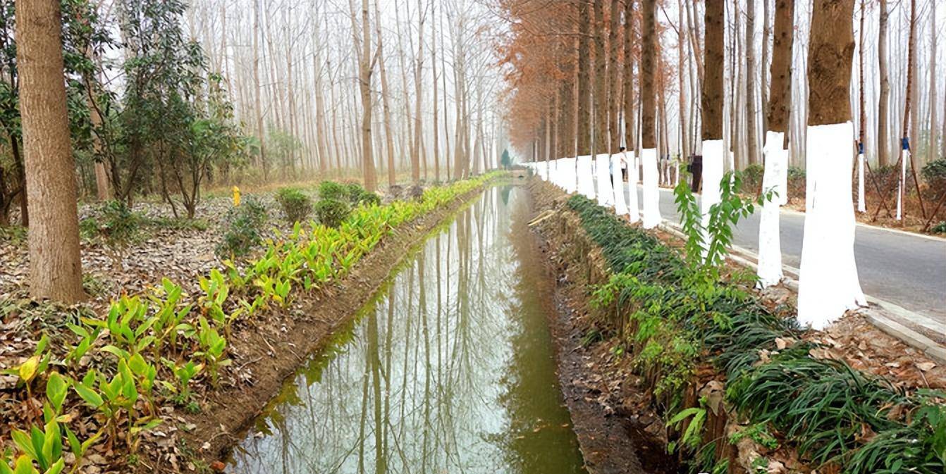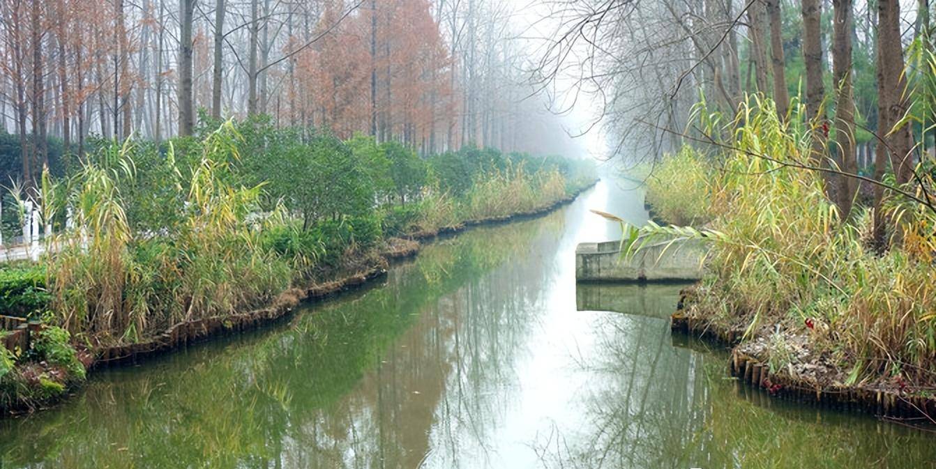 河岸植被茂密,品种丰富,水生植物丛生。游客可乘乌篷小船穿行在林中。