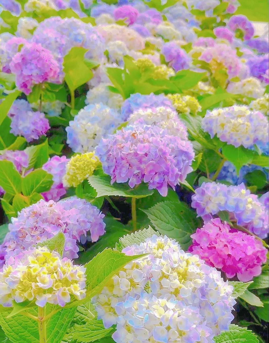 花色会因种植土壤的酸碱度而变色,可以变幻出各种漂亮的渐变色花丛。在酸性的环境中是红色,碱性的环境中是蓝色。