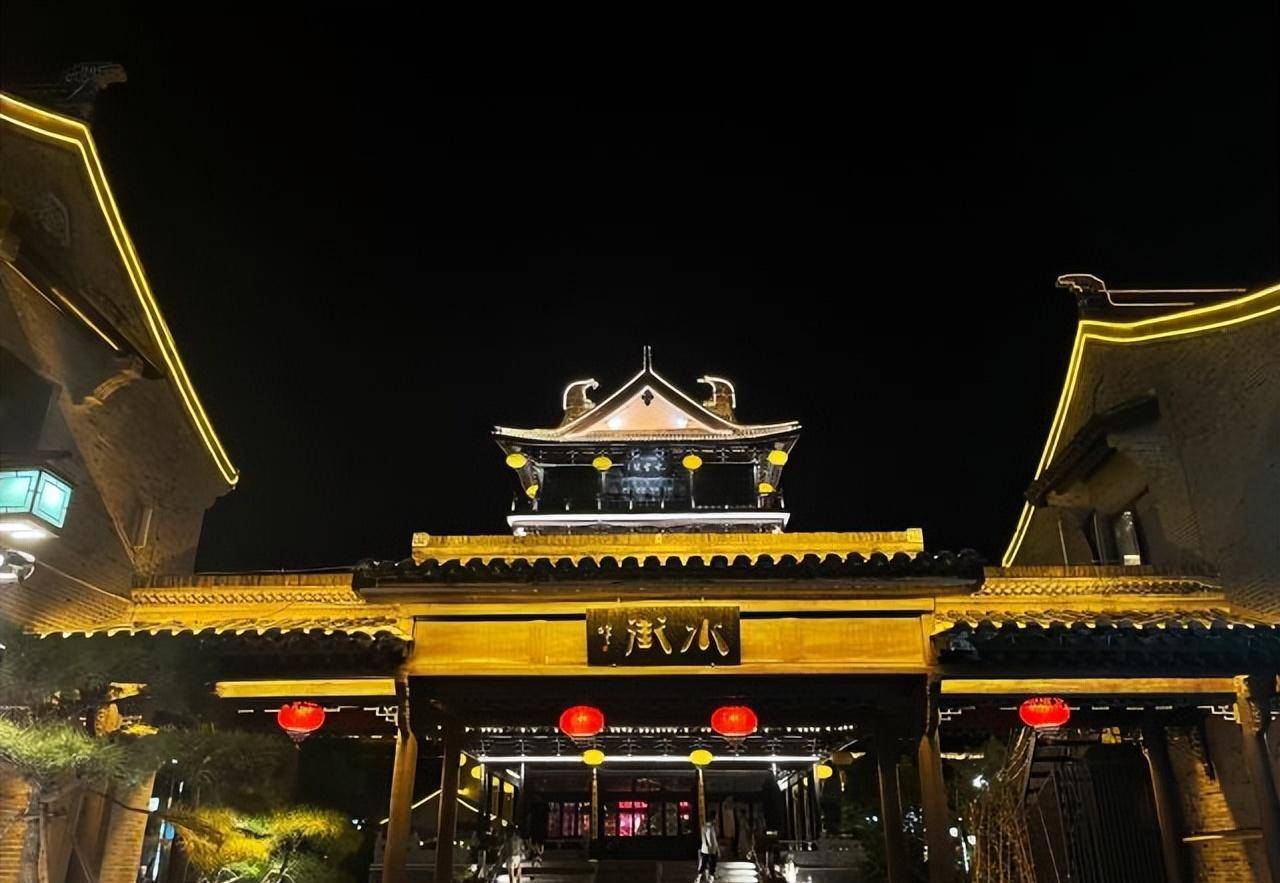 八百米蜿蜒河道的建筑桥梁,有永兴寺、范仲淹像、盐商会馆、水街牌坊门、云水桥、水云阁等 ,建筑在夜景灯光下还是不错的。