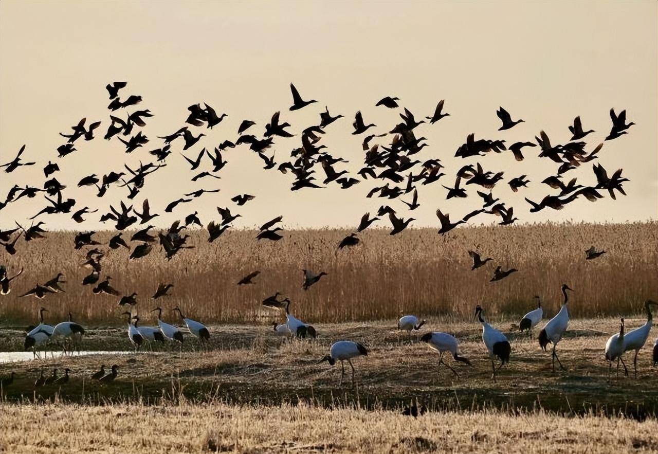 接下来就是茫茫一片盐蒿和漫长的徒步木栈道,视野很开阔,时不时会有丹顶鹤、野鸭、白鹭等飞禽在身边飞过。