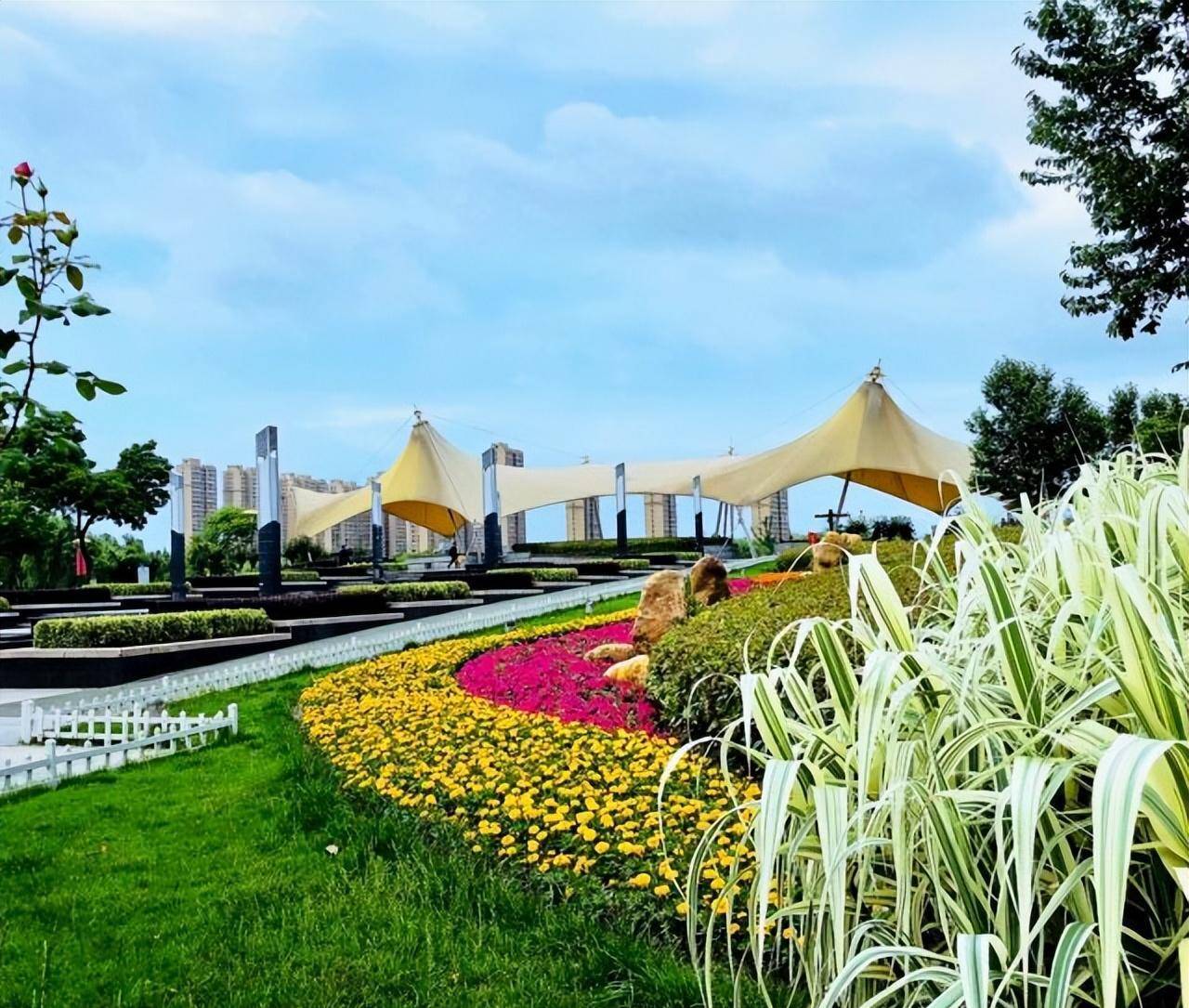 盐渎公园是盐城市区空气最好的地方,也是很自然的地方。里面既有小片的花海,也有大片大片的树林。沿河岸走,还有许多现代化建筑景观,与远处的现代城景相映成趣。